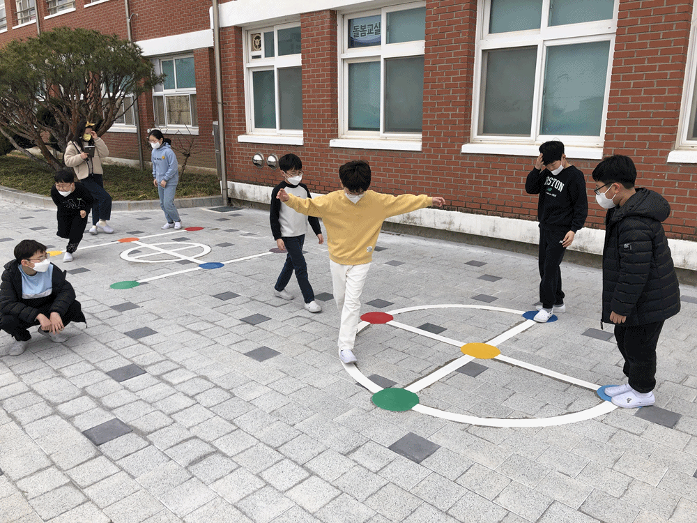 바닥 놀이 공간 구축은 신체를 이용하여 활동하는 건전한 놀이 문화를 형성하고 친구와 함께 놀고, 쉬며, 자유롭게 상호작용함으로써 학생들의 전인적 성장을 돕는 발판을 마련하였다.