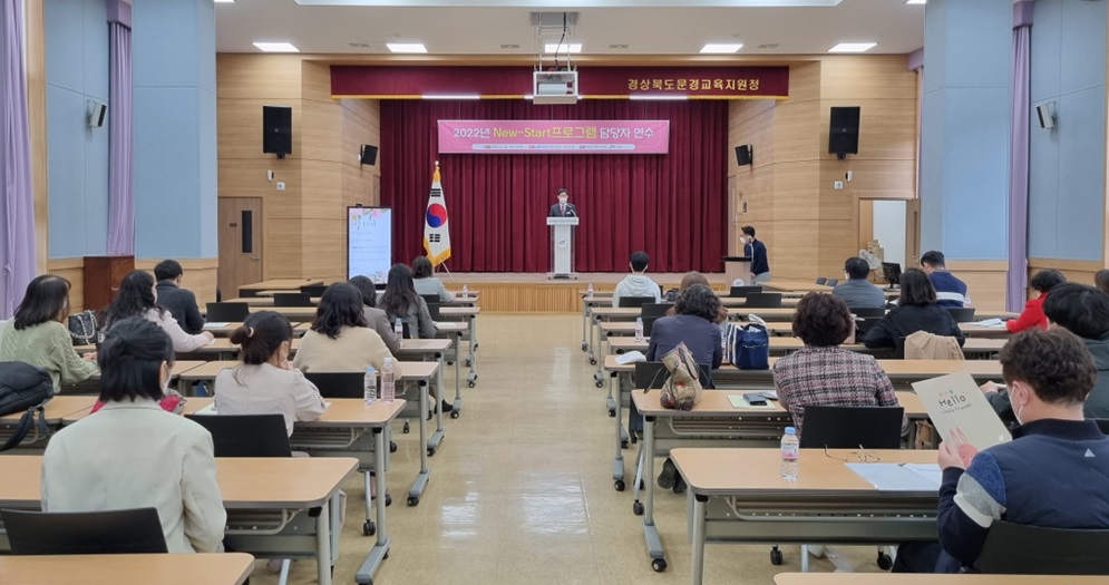 경상북도문경교육지원청(교육장 정진표) Wee센터에서는 3. 30.(수) 관내 초・중・고등학교 New-Start 프로그램 담당자를 대상으로 『2022년 New-Start 프로그램 담당자 전달 연수』를 실시하였다.