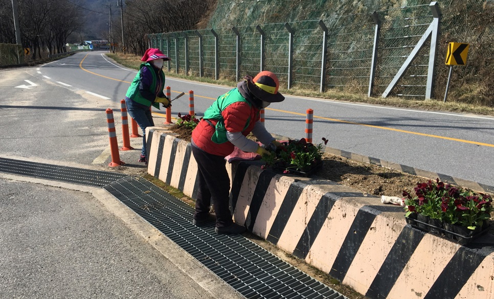동로면(면장 윤두현)은 성큼 다가온 봄을 맞이하여 이틀간 관내 주요 도로변과 소공원에 팬지꽃 3만본을 식재하고 면소재지 주변 환경정화 활동에도 나섰다.