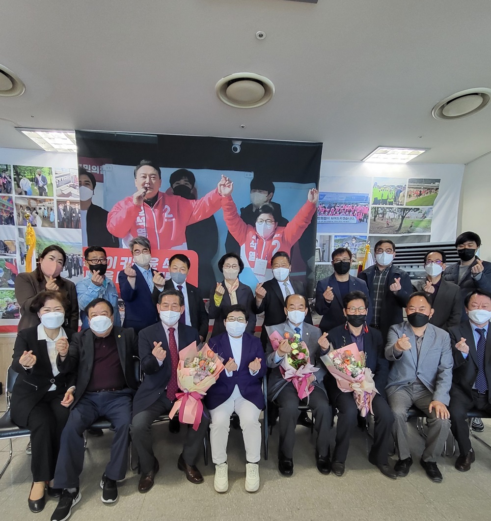 2일 국민의힘 상주·문경 당협사무실에서는 김태희 시의원, 변해광 시의원, 임부기 시의원의 아름다운 용퇴를 축하하기 위하여 상주·문경 임이자 당협위원장, 김학술 수석 부위원장, 김진욱 도의원, 남영숙 도의원을 비롯한 주요 당직자 20여명이 참석했다.