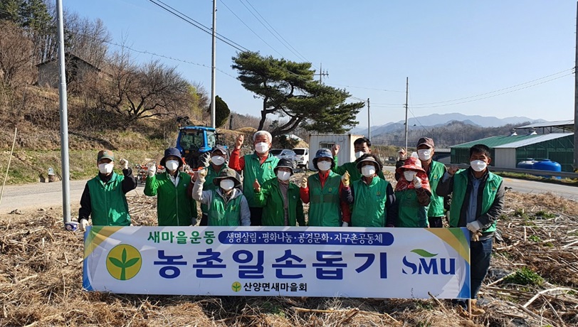 한편, 산양면 새마을회는 농촌일손 돕기를 마무리한 후 봄맞이 나들이객에 깨끗한 산양의 이미지를 심어주기 위하여, 하천변 일대 쓰레기를 수거하는 등 환경정화활동도 함께 실시하였다.