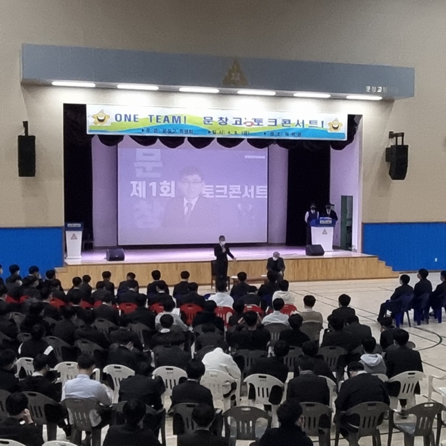 문창고등학교(교장 이동석)는 2022년 4월 8일(금) 오후 4시 서봉관(瑞峰館)에서‘휴대폰 및 야간 자율학습 자율화 방안’에 관한 제1회 토크콘서트를 열었다. 이 행사는 학생회가 주관하여 전교생과 교사들이 한데 어우러져 허물없이 대화를 나누는 장으로 미래 세계 민주시민교육을 선도하는 문창고등학교의 면모를 잘 보여주는 행사였다.