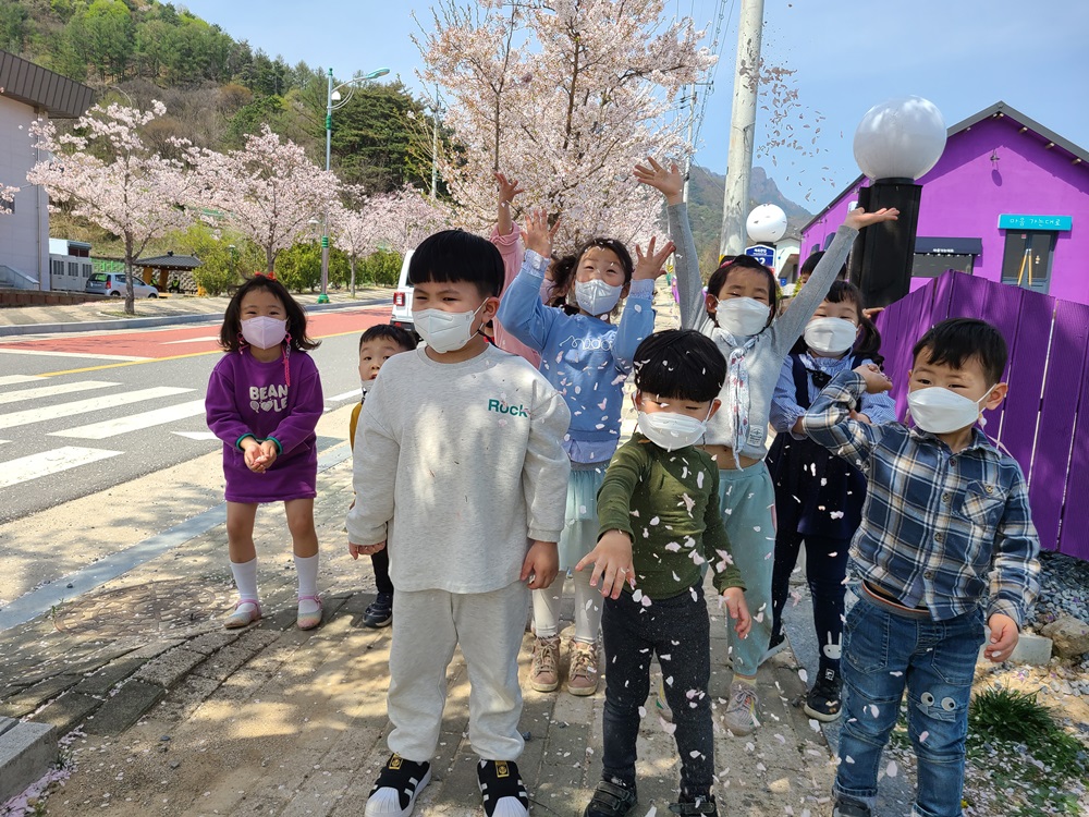 벚꽃길 산책은 아이들의 안전한 인솔을 위해 교감 선생님, 오후 시간대에 방과 후 교사와 함께 동행하였다. 벚꽃잎이 바람에 흩날리는 모습을 보고 유아들은 “꽃비가 내리는 것 같아요” “꽃잎이 꼭 눈 같아요” 하며 즐거워하였다.