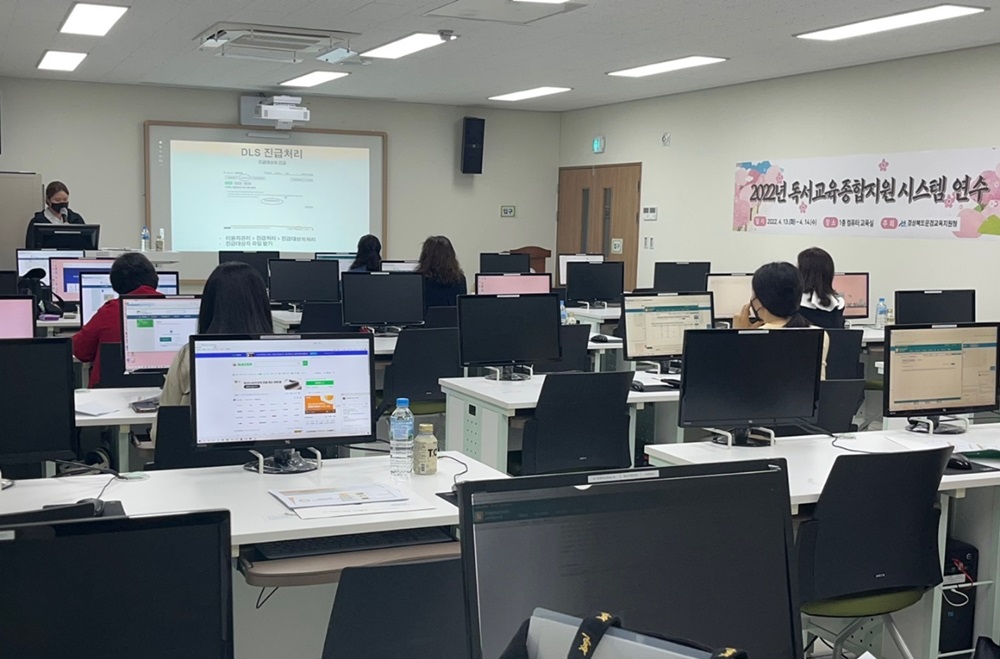 교육지원청(교육장 정진표)은 4월 13일부터 14일까지 2차례에 걸쳐 관내 초등학교 13개교, 중학교 3개교, 고등학교 2개교 학교도서관 담당 교사의 업무 능력 신장과 전문성 강화를 위하여 독서교육종합지원시스템(DLS) 연수를 실시하였다.