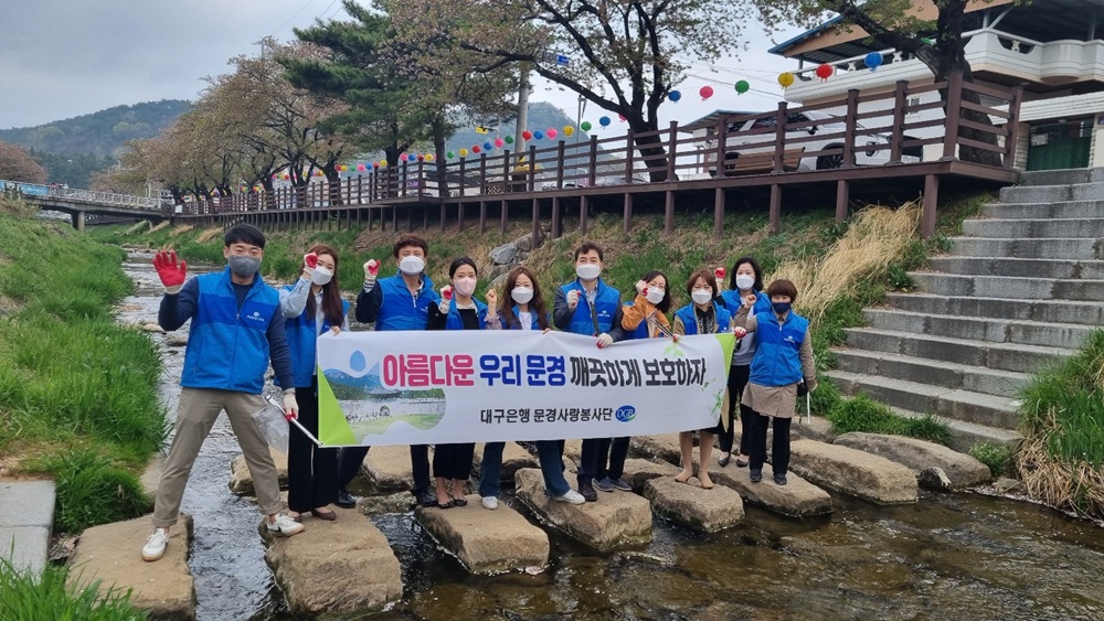 대구은행 문경사랑봉사단(단장 현영수)은 13일 문경시민의 휴식처인 모전천에서 각종 쓰레기와 오물 등을 수거하는 새봄맞이 환경정비 활동을 실시했다.