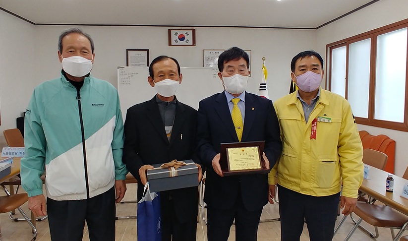 이번 정기총회는 코로나-19로 인하여 비대면으로 치러져 장수상과 모범상을 14개 읍면동 분회로 전달하고 분회에서 개별 시상하는 한편, 고정환 지회장은 이날 산양면을 찾아 대상 어르신에게 직접 상패와 소정의 상품을 수여하였다.
