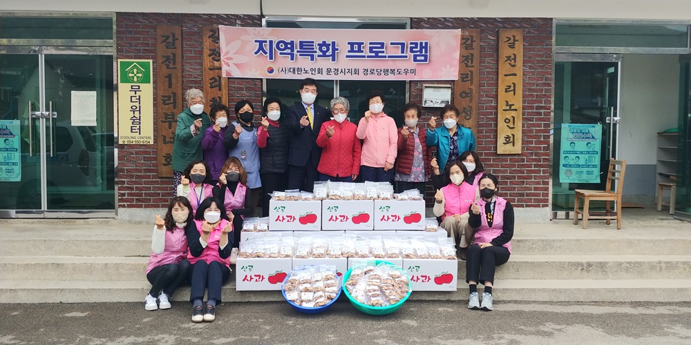 이번 프로그램은 경로당 행복도우미가 우리지역만의 특화된 프로그램을 계획하고 특산품인 사과를 구하는 과정에서 익명의 기부자를 찾아 문경사과 900개를 기부 받았다.