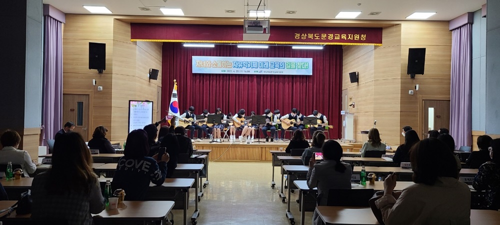 권영근(경상북도교육청 교육국장) 강사는 미래교육 발전을 위해 자유학기제가 나아가야 할 방향과 전환기 교육과정의 이해에 대하여 강의를 하였으며, 자유학기제 동아리활동 발표로 문경여중 댄스팀과 산양중 통기타 동아리의 공연이 있었다.