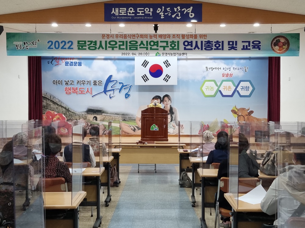 문경시농업기술센터(소장 이경호)에서 4월 20일 우리음식연구회원 88명이 참석한 가운데 2022년 연시총회 및 교육을 개최했다.