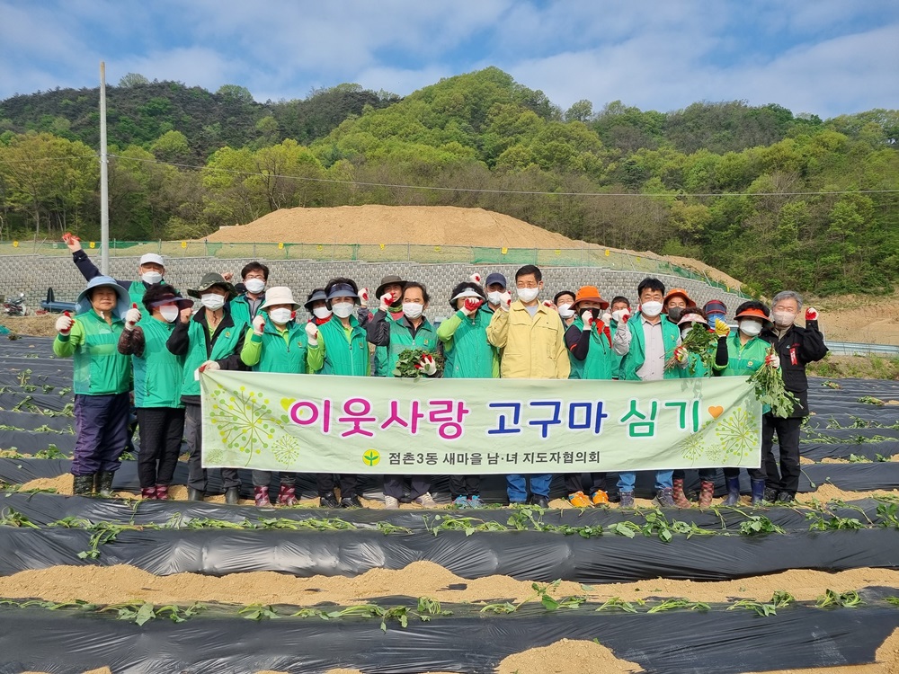점촌3동 새마을남녀지도자협의회(회장 이상산, 부녀회장 서순옥)는 4월 24일(일) 오전 7시부터 회원 30여명이 참석한 가운데, 새마을영농작업장에서 ‘이웃사랑 고구마 심기’를 진행했다.