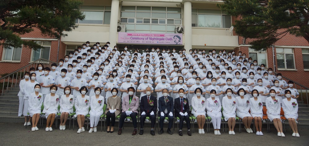 나이팅게일 선서식은 임상 현장으로의 첫걸음을 내딛는 학생들이 나이팅게일의 숭고한 정신을 되새기고, 인류의 건강과 안녕을 위해 헌신할 것을 다짐하는 행사로 금년에는 코로나19 감염병 예방과 사회적 거리두기 방역수칙 준수를 위해 실외에서 축소, 진행했다.