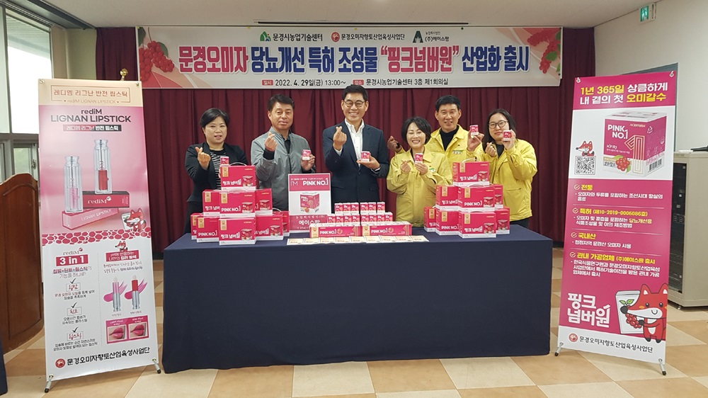 문경시는 문경오미자의 건강기능성을 이용한'오미자와 콩즙을 포함하는 당뇨개선 조성물(五味渴水)'특허기술을 '핑크넘버원오미갈수'라는 브랜드로 산업화 제품을 출시하고 본격적 홍보마케팅에 돌입하였다고 밝혔다.