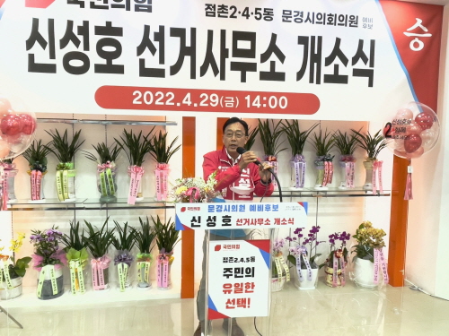 국민의 힘 신성호(점촌 2‧4‧5동) 문경시의회의원 선거 예비후보 선거사무소 개소식이 4월29일 오후 2시 모전동 소재 사무실에서 열렸다.