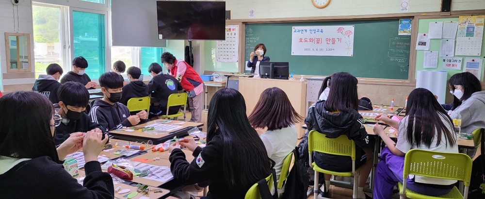 문경서중학교(교장 황희중)는 감사의 달 5월을 맞이하여 5월 4일(수) 오전 2, 3교시(9:55~10:40)를 활용하여 전교생을 대상으로 문경시 지역사회보장협의체에서 주관하는 ‘효도화’ 만들기를 실시하였다.