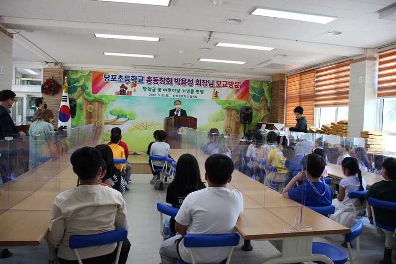 제 100회 어린이 날을 기념하여 5월 3일 당포초등학교 총동창회 회장 박용성은 신영배 수석부회장, 김중연 사무국장과 모교를 방문하였다.