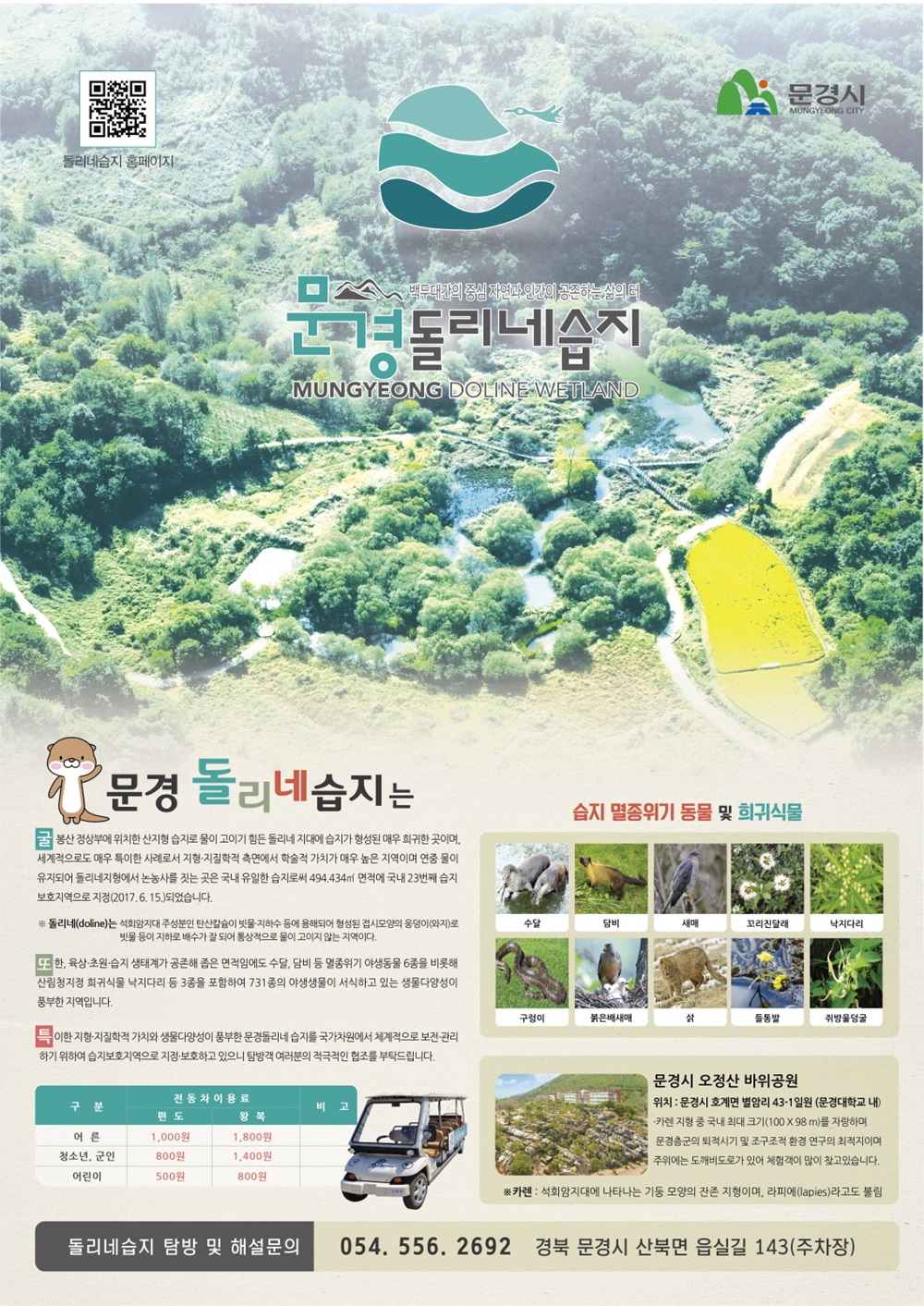 문경시 환경보호과에서는 문경돌리네습지 홍보용 포스터, 팜플렛 등을 제작하여 경북 관내·외 초,중학교 약800개 학교에 배포했다.