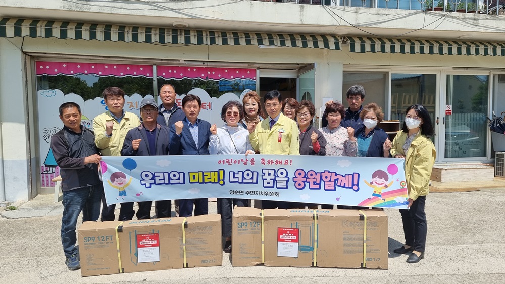 영순면 주민자치위원회(위원장 김종구)에서는 제100회 어린이날을 맞아 지역내 아동들이 많이 이용하고 있는 영순면지역아동센터를 방문하여 노후 된 놀이기구를 튼튼한 새 것으로 교체해 주었다.