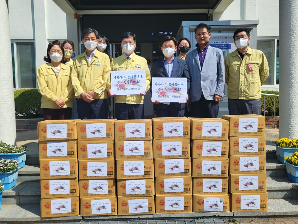 영순면 주민자치위원회(위원장 김종구)에서는 어버이날을 맞아 경로당을 방문하여 감사의 인사를 드리고, 간식으로 드실 수 있도록 국수를 증정하였다.
