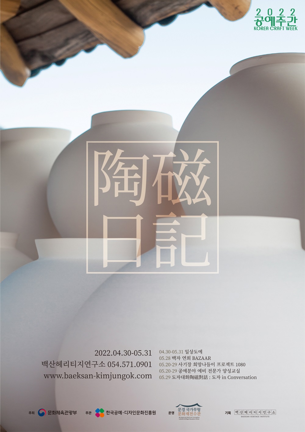 백산헤리티지연구소(소장 김남희)가 기획하여 '사기장의 도자일기(陶磁日記)'라는 주제로 마련된 2022 공예주간 공예문화 프로그램은 천연의 흙이 국가무형문화재 김정옥 사기장의 전통적인 방식으로 조합되어 도자라는 새로운 물성의 그릇으로 탄생되는 과정을 전시, 마켓, 체험, 교육을 통해 대중에게 공유하기 위해 기획되었다.