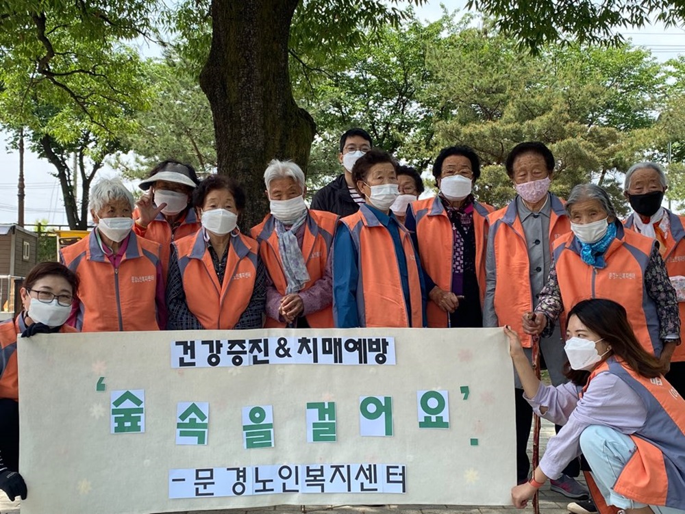 문경노인복지센터에서는 일상생활 회복에 발맞춰 재가노인통합지원서비스 대상 어르신들을 모시고 활동력 감소로 떨어진 신체적, 인지적 기능을 회복하고 치매예방을 돕는 걷기 프로그램을 진행하였다.