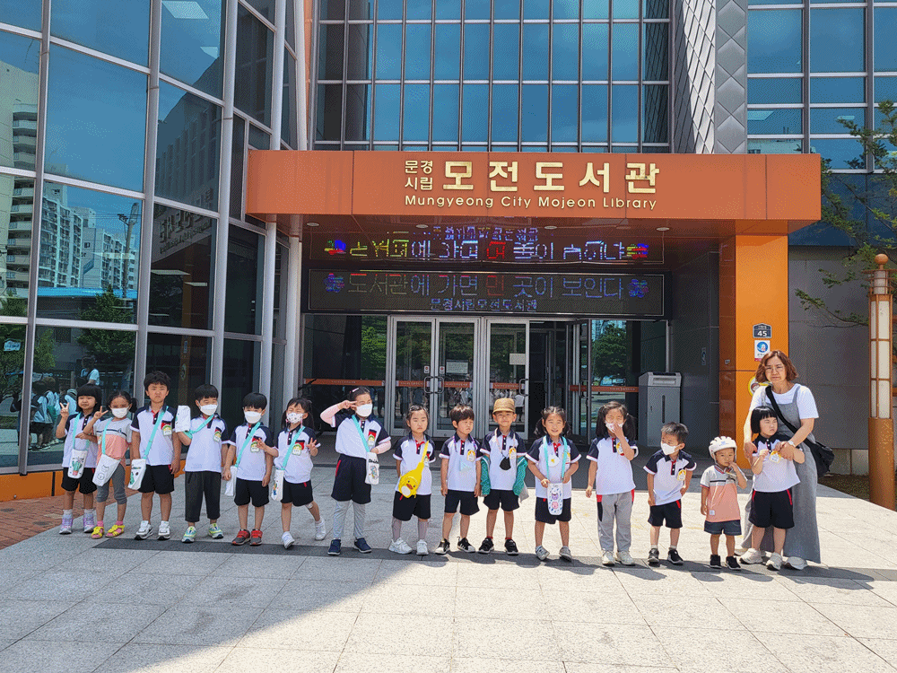 가은초등학교병설유치원(원장 최을희)은 6월 8일(목) 2학급 전체 원아 15명를 대상으로 모전도서관에 방문하여 체험형 구연 동화에 참여하였다.