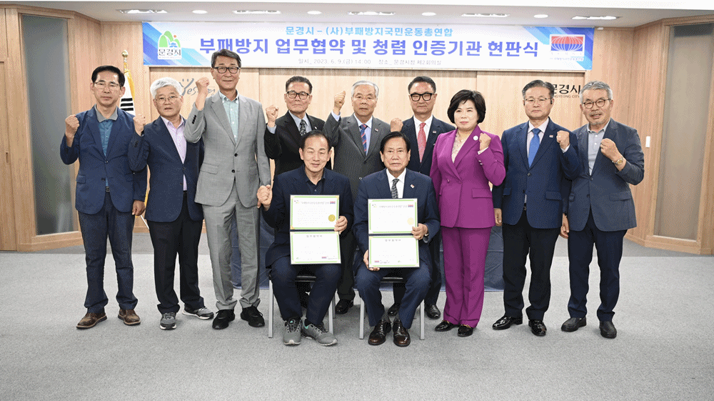 문경시는 9일 문경시청 제2회의실에서 국민권익위원회 소관 (사)부패방지국민운동총연합과 부패방지 및 청렴 실천을 위한 업무협약을 맺었다.