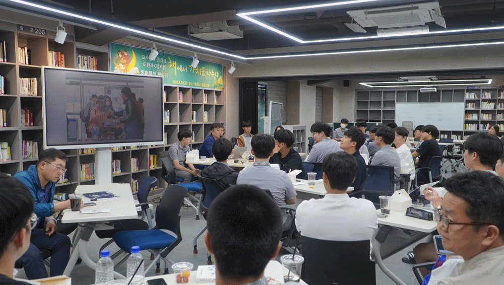 이번 행사는 ‘청운서관’을 오픈하며 특별하게 『체육복을 읽는 아침』의 저자인 이원재 선생님을 모시고 저자와의 북토크 형식으로 진행했다. 사전에 『체육복을 읽는 아침』을 도서로 선정하고 매일 정해진 분량을 읽으며 인상 깊은 구절, 감상평을 온라인 플랫폼(패들렛)에 공유하였고, 이를 바탕으로 각자의 관점에서 학교라는 공간을 어떻게 이해하고 있는지 함께 이야기하며 서로에 대한 공감의 폭을 확대하는 기회가 되었다.