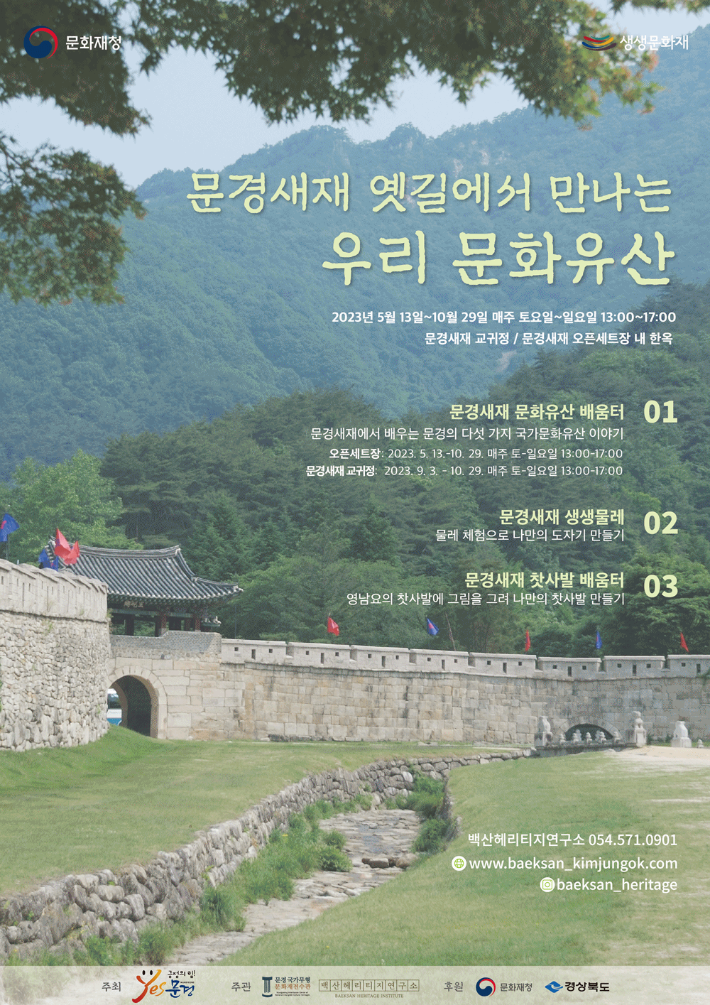 백산헤리티지연구소(소장 김남희)가 2023년 문화재청 생생문화재 사업의 일환인 ‘문경새재 옛길에서 만나는 우리 문화유산’ 프로그램을 5월부터 본격 운영하고 있다고 밝혔다.