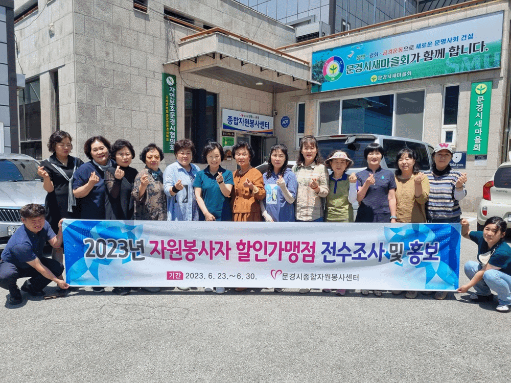 문경시종합자원봉사센터(센터장 백화자)는 자원봉사자 30여명이 참여하여 『문경시 자원봉사자 할인가맹점』전수조사 및 홍보활동을 6월 23일부터 이달 말까지 펼친다.