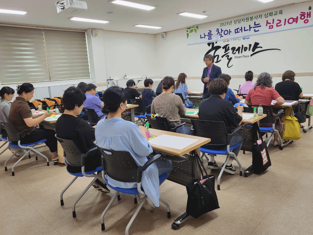 이번 상담자원봉사자 심화 교육은 관내 상담 자원봉사를 신청한 자원봉사자 15명을 대상으로‘나를 찾아 떠나는 심리여행’이라는 주제로 구성된(MBTI, 나에게로 떠나는 자문자답, TCI, 미술치료) 교육으로 진행되었으며, 이번 교육을 통해 청소년 상담과 활동에 필요한 전문성을 향상하여 지역 내 청소년들에게 상담 수혜의 폭을 넓히고, 실질적 도움이 필요한 위기 청소년들에게 적절한 서비스를 제공하고자 운영되었다.