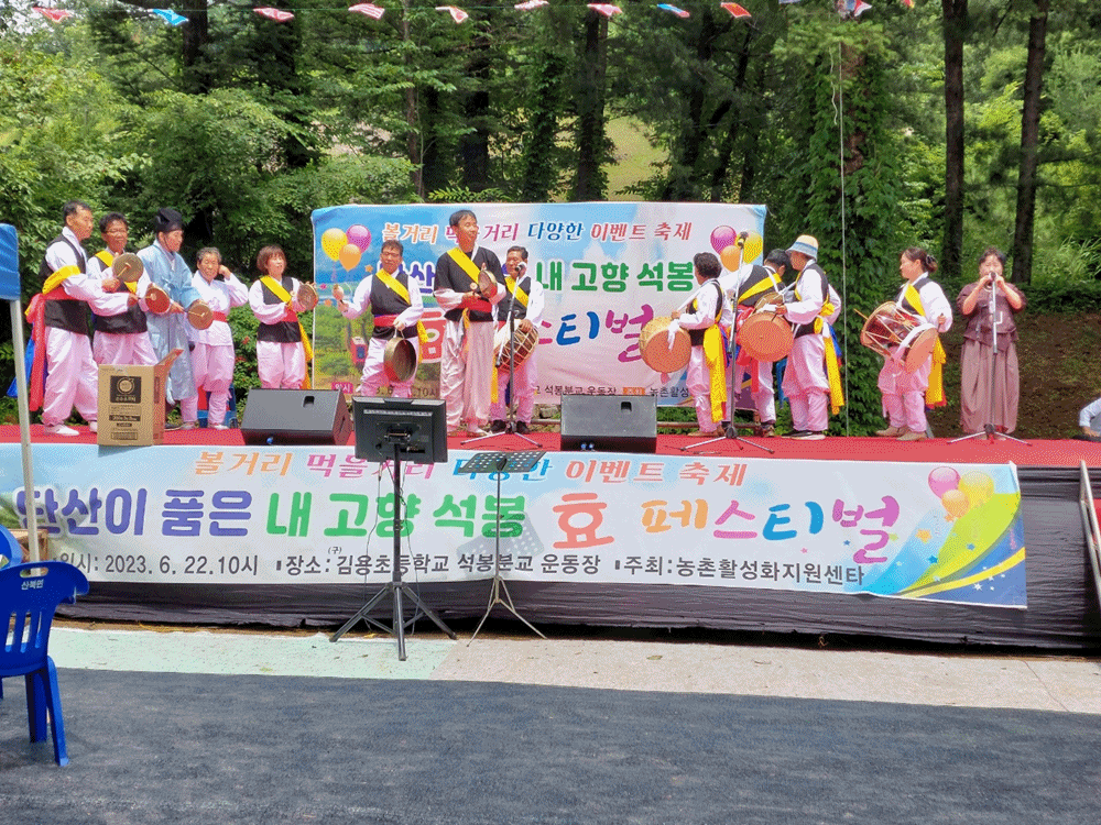 6월 22일 산북면 석봉리 석봉분교(구 김용초등학교) 운동장에서 주민 100여 명이 참석한 가운데 ‘단산이 품은 내 고향 석봉 효페스티벌’ 이 마을 주민들의 화합 속에 마무리되었다.