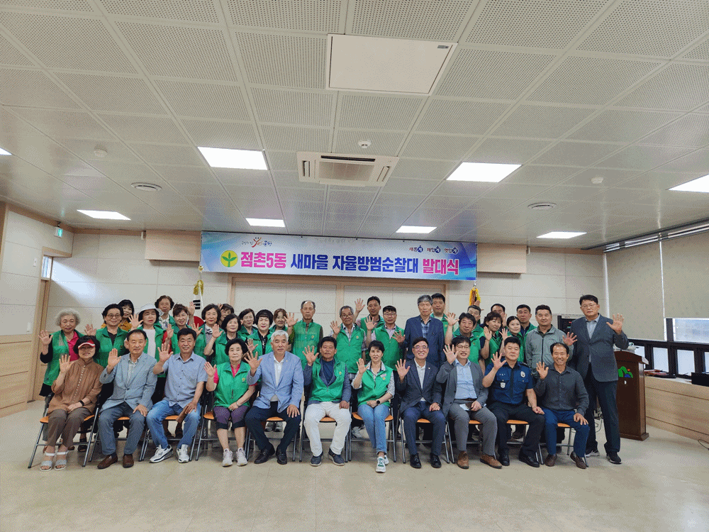 점촌5동 행정복지센터 대회의실에서 회원들과 시·도의원, 도움 단체장 등 50여 명이 참석한 가운데 자율방범순찰대 발대식을 가졌다.