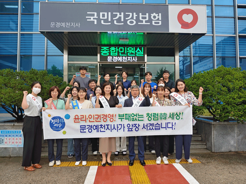 국민건강보험공단 문경예천지사(지사장 황재훈)는 7월10일 고객의 날을 맞아 전 직원 ‘윤리‧인권경영 및 반부패‧청렴실천 다짐 결의대회’실시하였다.