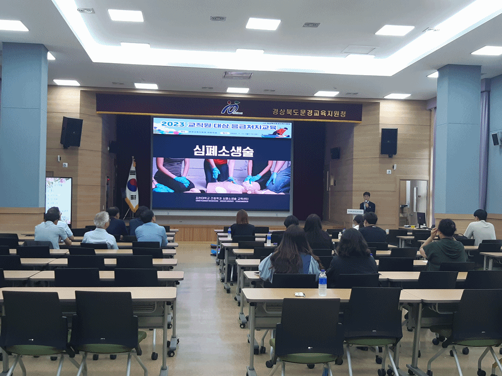 문경교육지원청(교육장 김현오) 학교지원센터는 7월 17일 문경교육지원청 3층 대회의실에서 관내 교직원 16명을 대상으로 심폐소생술 및 응급처치 교육을 실시하였다.