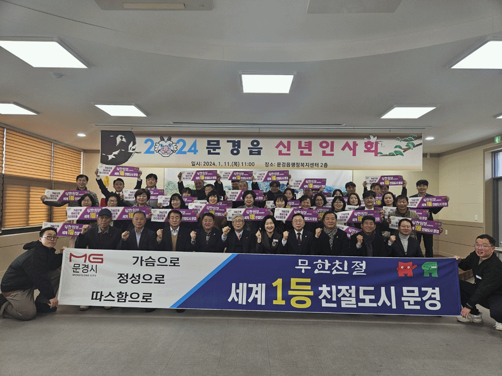 이번 신년 인사회에서는 1월 8일 자로 문경읍에 취임한 유미숙 문경읍장과 기관단체장, 주민자치위원, 직원 등 70여 명이 참석하여 신년사를 시작으로 2024년 주요 시정 안내, 친절 도시 문경 만들기 퍼포먼스를 펼쳤다.