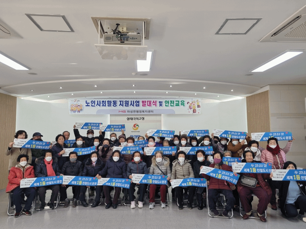 마성면(면장 이저영)에서는 2024.1.12.(금) 마성면행정복지센터 2층 강당에서 노인일자리 사업 참여 어르신들 37명이 참석한 가운데 노인일자리사업 발대식 및 안전교육을 실시하였다.
