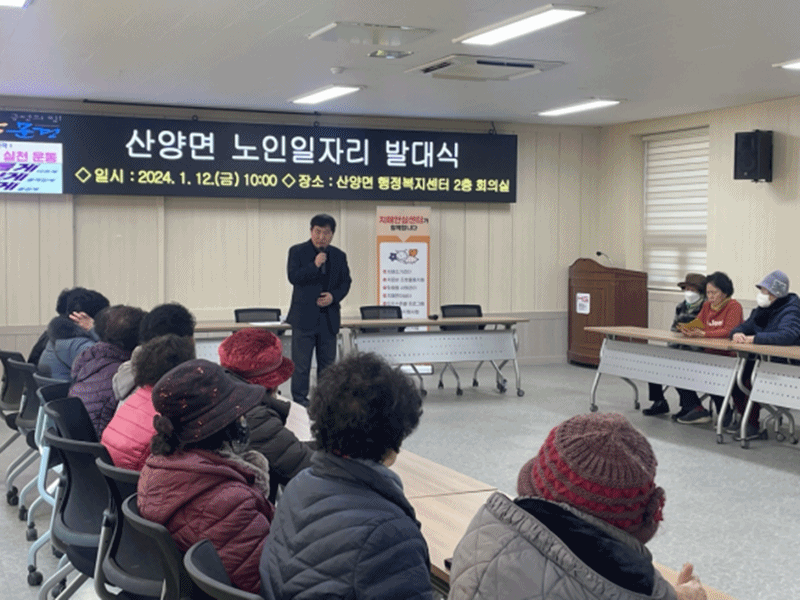 산양면(면장 홍종철)은 지난 12일 산양면 행정복지센터 2층 회의실에서 참여 어르신들 28명이 참석한 가운데 2024년 노인 일자리 사업 발대식을 실시했다.