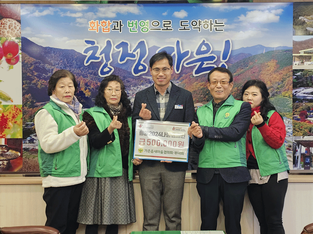 문경시 가은읍 새마을회(협의회장 박대환, 부녀회장 김진숙)는 17일 회원들의 온정을 담아 희망2024 나눔캠페인에 동참하고자 이웃돕기 성금 50만 원을 경북사회복지공동모금회에 기탁하였다.