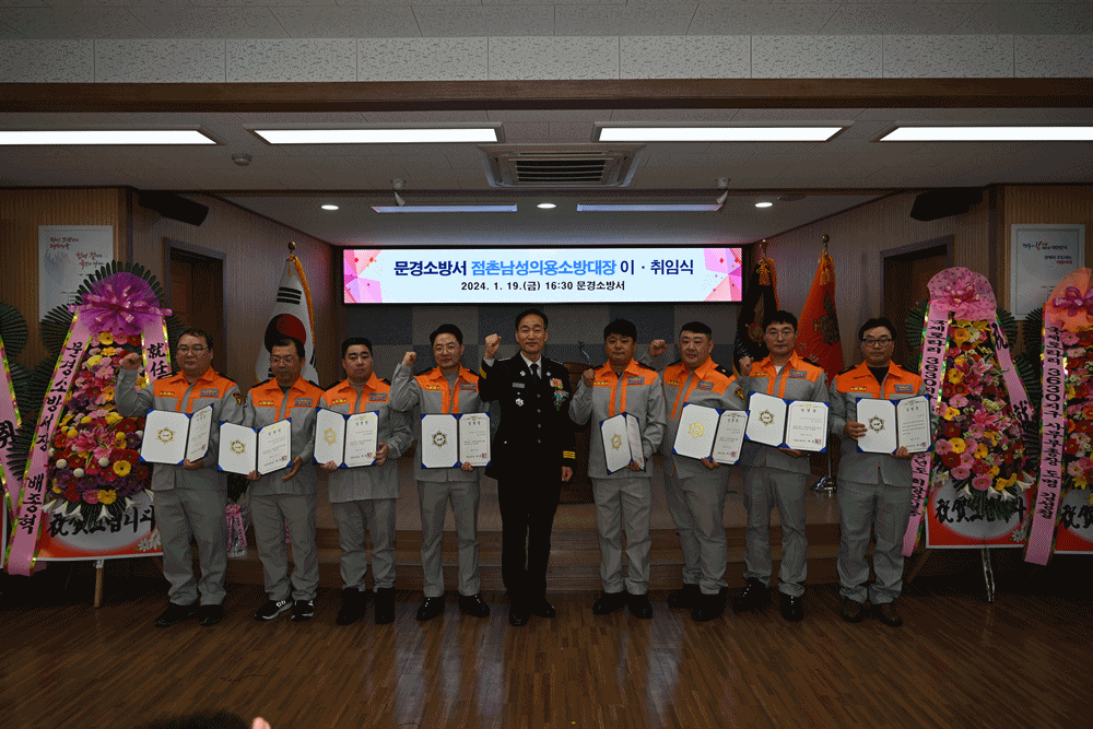 문경소방서(서장 배종혁)는 지난 19일 문경소방서에서 각 기관단체장 및 의용소방대원 등 내빈을 포함하여 100여명이 참석한 가운데 점촌남성의용소방대장 이‧취임식을 열었다.