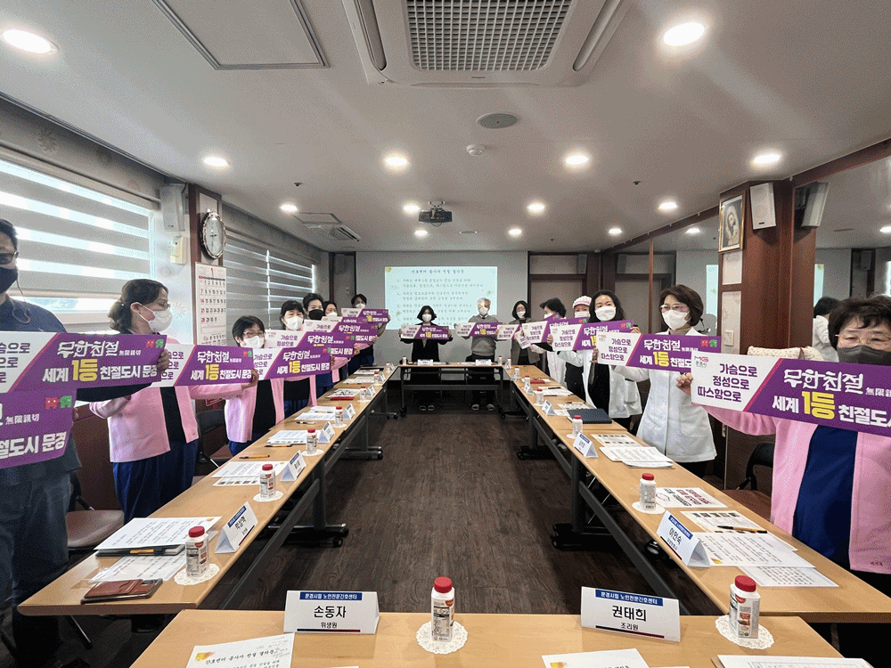 간담회에서는 안전한 근무 환경 조성과 친절서비스 강화를 위해 근무시작 전 친절다짐 구호 제창, 어르신에게 인사하기 등 다양한 의견이 제시되었다. 이어서 고객 감동을 위한 친절교육과 종사자 친절 결의문을 선서하면서 2024년 문경시 친절·스마일 운동에 적극 참여하여 ‘세계 1등 친절도시 문경 건설’에 앞장서자는 다짐의 시간을 가졌다.