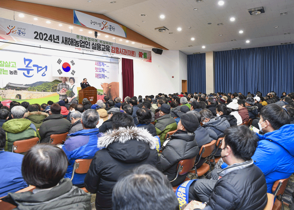 문경시농업기술센터(소장 김미자)는 지난 1월 23일 새해농업인 실용교육 마지막 일정을 소화했다. 이번 교육은 감홍 사과 재배기술 교육으로 오전 10시부터 이론교육, 오후 2시부터 현장교육 과정으로 이루어졌다. 이날 교육은 당초 오전 10시 150명을 계획했으나 앞자리를 차지하기 위해서 오전 9시부터 문경감홍재배 농가가 몰려들어 이미 9시 40경 460명을 넘어서며 그야말로 문전성시를 이루었다.