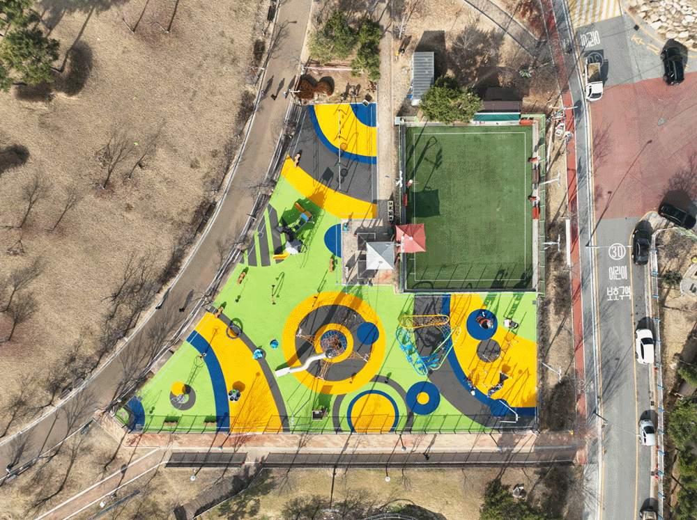 어린이놀이터 놀이공간은 네트 플레이존, 스피드&스릴 체험존, 점프&회전 어드벤처존, 패밀리존으로 구성 되어있다. 높낮이를 활용한 다양한 네트 놀이 체험공간과 30여 미터 규모의 공중 활주로가 있는 스피드&스릴 체험공간에는 초등학생들이 이용 가능한 시설들을 설치하였고 호기심과 도전정신을 자극하는 다양한 회전 놀이공간과 가족형 놀이공간에는 유아들을 위한 놀이시설을 설치하여, 유아부터 초등학생까지 다양한 연령의 아이들이 어우러져 놀 수 있는 어린이놀이터로 재조성하였다.