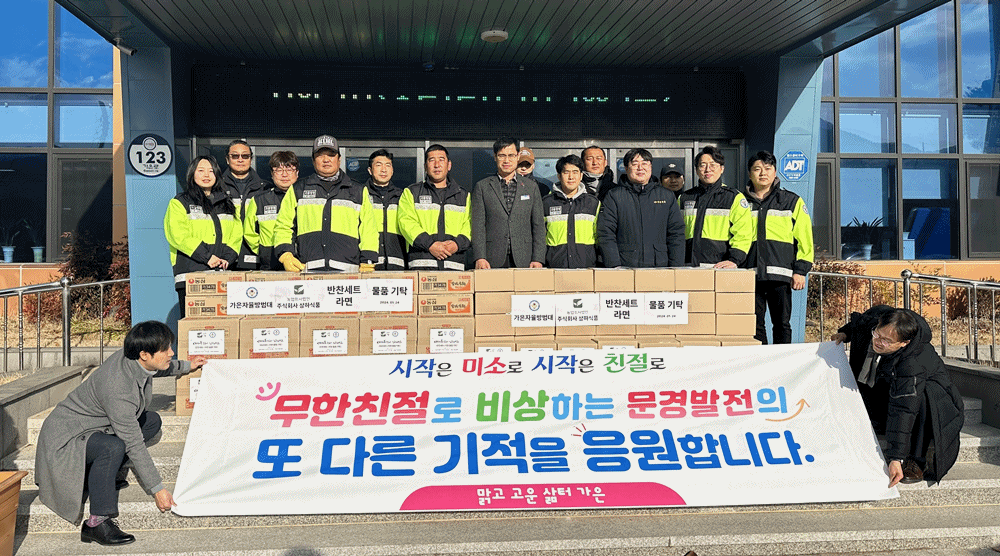 문경시 가은읍에 위치한 농업회사법인 주식회사 상하식품(대표 박상하)과 가은읍자율방범대(대장 김완기)는 지난 24일에 가은읍행정복지센터를 방문하여 지역 내 경로당에 전달을 부탁하며 물품(200만 원 상당)을 기탁했다.