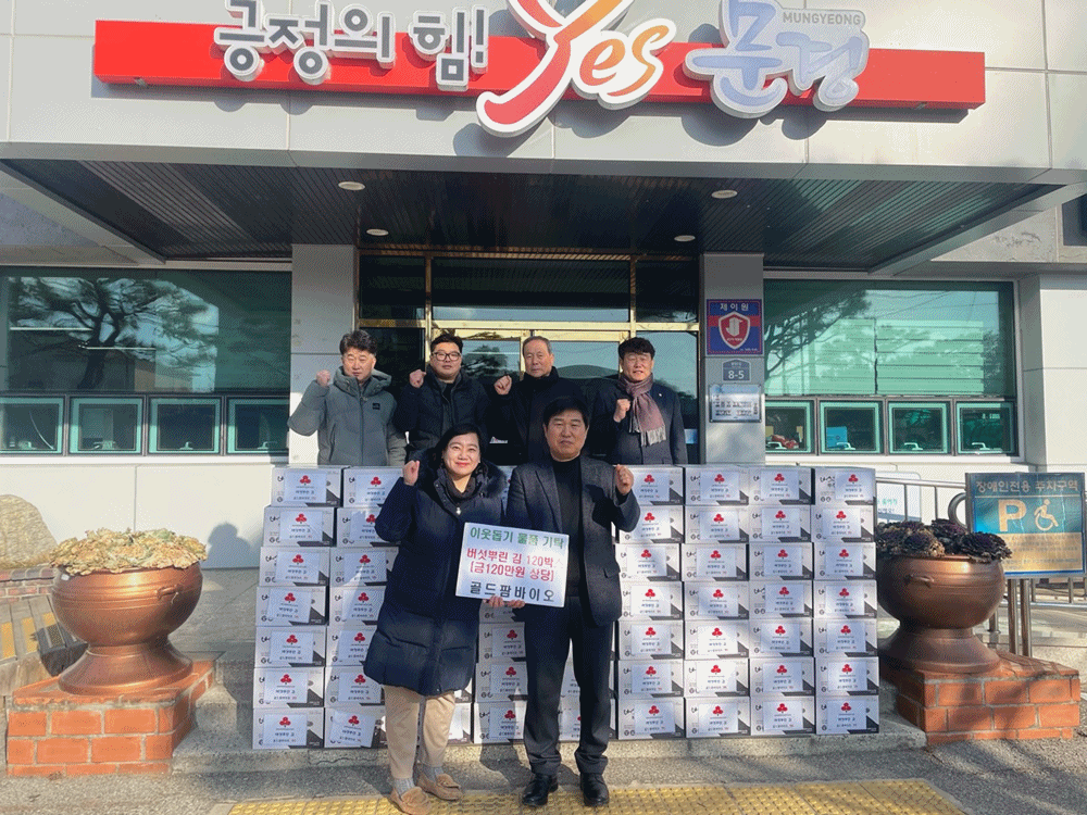 문경시 산양면 소재의 기업 골드팜바이오(대표 김진선)는 지난 1월 24일 이웃을 위해 써달라며 버섯뿌린 김 120박스(금120만 원 상당)를 산양면행정복지센터(면장 홍종철)에 기탁하였다.