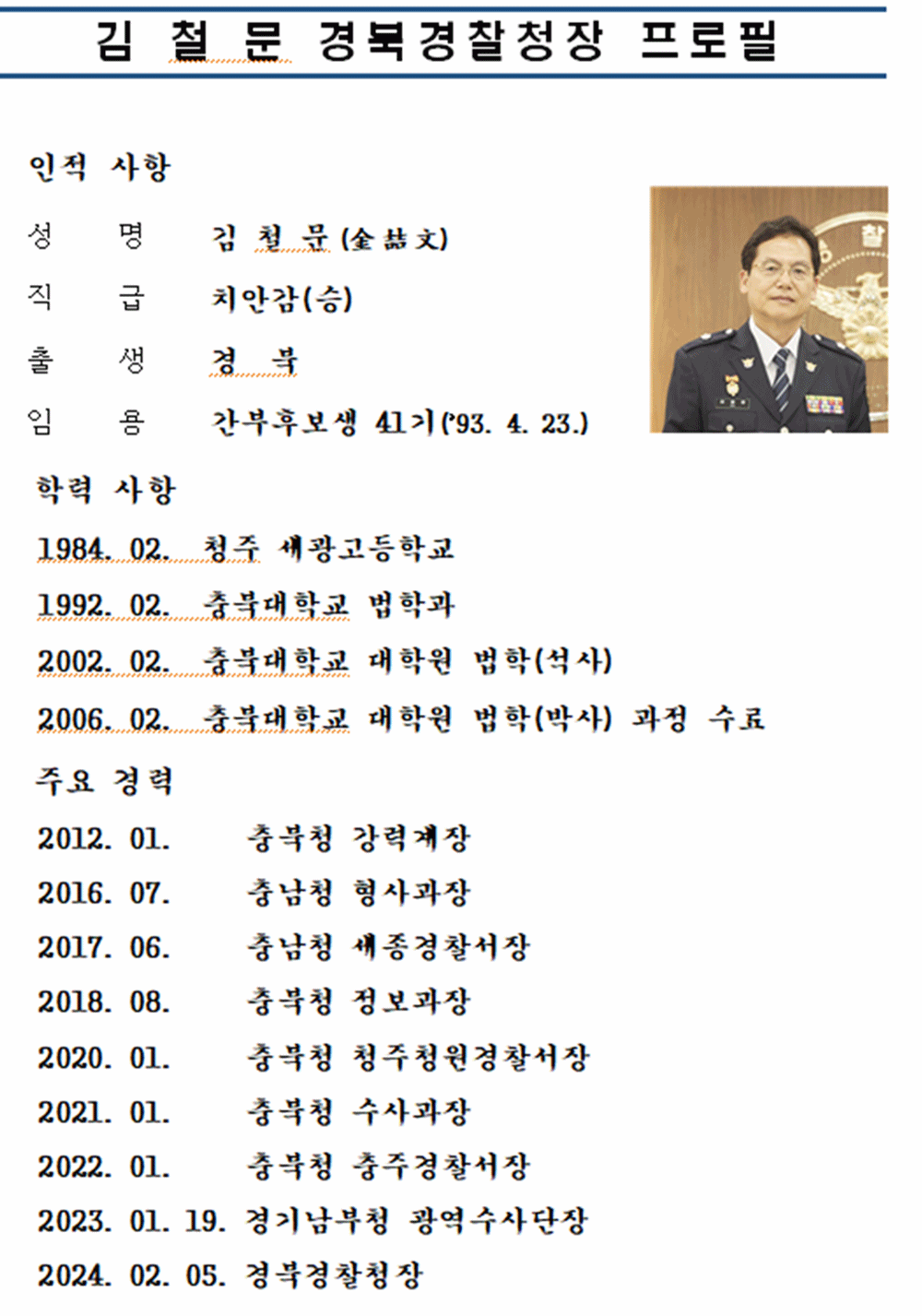 박성주 경찰청 미래치안정책국장은 경찰인재개발원장으로, 최현석 경찰청 국가수사본부 수사기획조정관은 중앙경찰학교장으로 발령 났다. 최종문 경찰청 경무인사기획관은 서울경찰청 생활안전차장으로 이동했다. 유재성 충남경찰청장은 대구경찰청장으로, 김철문 경기남부청 광역수사단장은 경북경찰청장으로 각각 전보됐다.