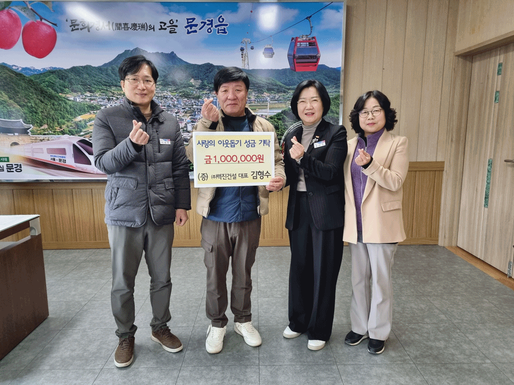 ㈜벽진건설 김형수 대표는 2월 13일(화) 문경읍행정복지센터를 방문하여 성금 100만원을 기탁했다.