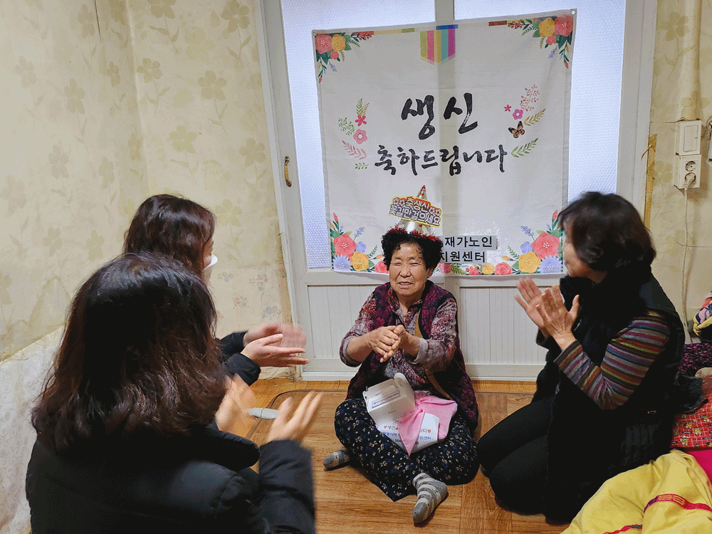 생신을 맞은 백모 어르신은 “작년에 이어 올해도 이렇게 축하를 받으니 무척 기쁘다. 나도 잊고 사는 생일을 센터에서 매년 기억해 주니 감사하다”라며 고마움을 표현했다.