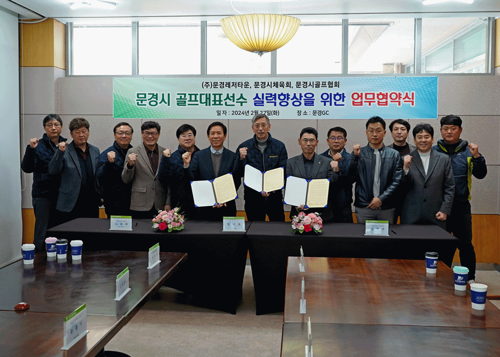 ㈜문경레저타운은 27일 오전 11시 문경GC에서 ‘문경시 골프대표선수 실력향상을 위한 업무협약’을 체결했다.