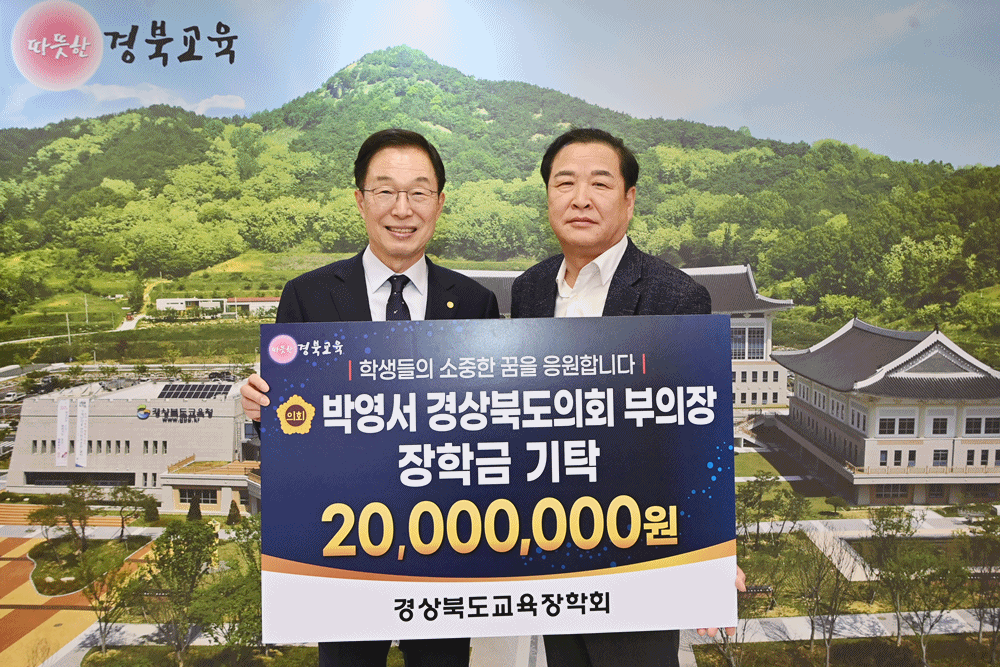 재단법인 경상북도교육장학회(이사장 임종식)는 5일 본청 3층 접견실에서 장학금 2,000만 원을 기부한 박영서 경북도의회 부의장과 장학금 기탁식을 했다.