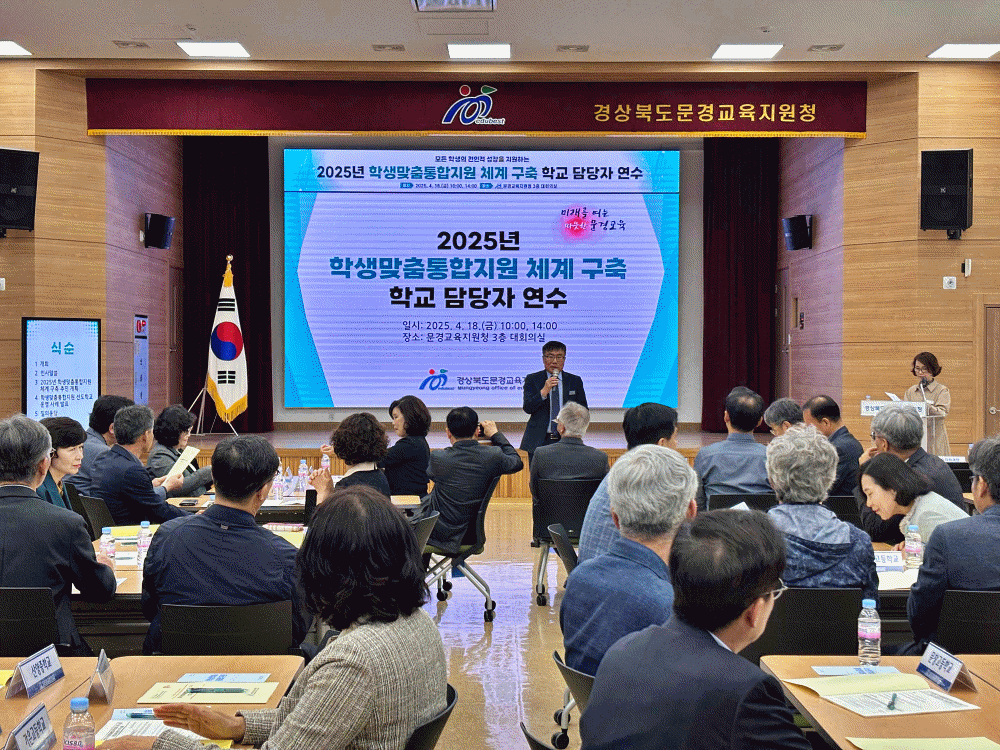경상북도문경교육지원청(교육장 이경옥)은 4월 18일(금) 오전 10시와 오후 2시에 두 차례에 걸쳐‘학생맞춤통합지원 체계 구축’을 위한 학교 담당자 역량 강화 연수를 개최했다. 이번 연수는 관내 교장, 교감, 담당 교사 100명이 참석하여 학생맞춤통합지원 체계에 대한 이해를 높이고, 이를 통해 효과적인 지원을 제공할 수 있는 방안을 모색하는 시간을 가졌다.